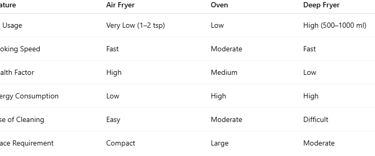 4️⃣ Air Fryer vs Oven vs Deep Fryer