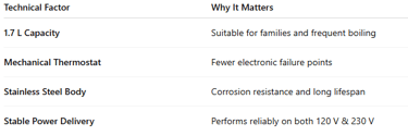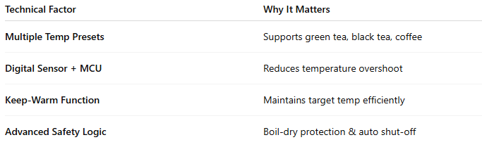 Choosing the right electric kettle today goes far beyond simply boiling water. Modern electric kettles vary significantly in power delivery, temperature accuracy, insulation design, safety logic, and long-term durability. These technical differences directly affect boil time, energy efficiency, brewing quality, and product lifespan — especially across different electrical standards in the US, Australia, and the UK.